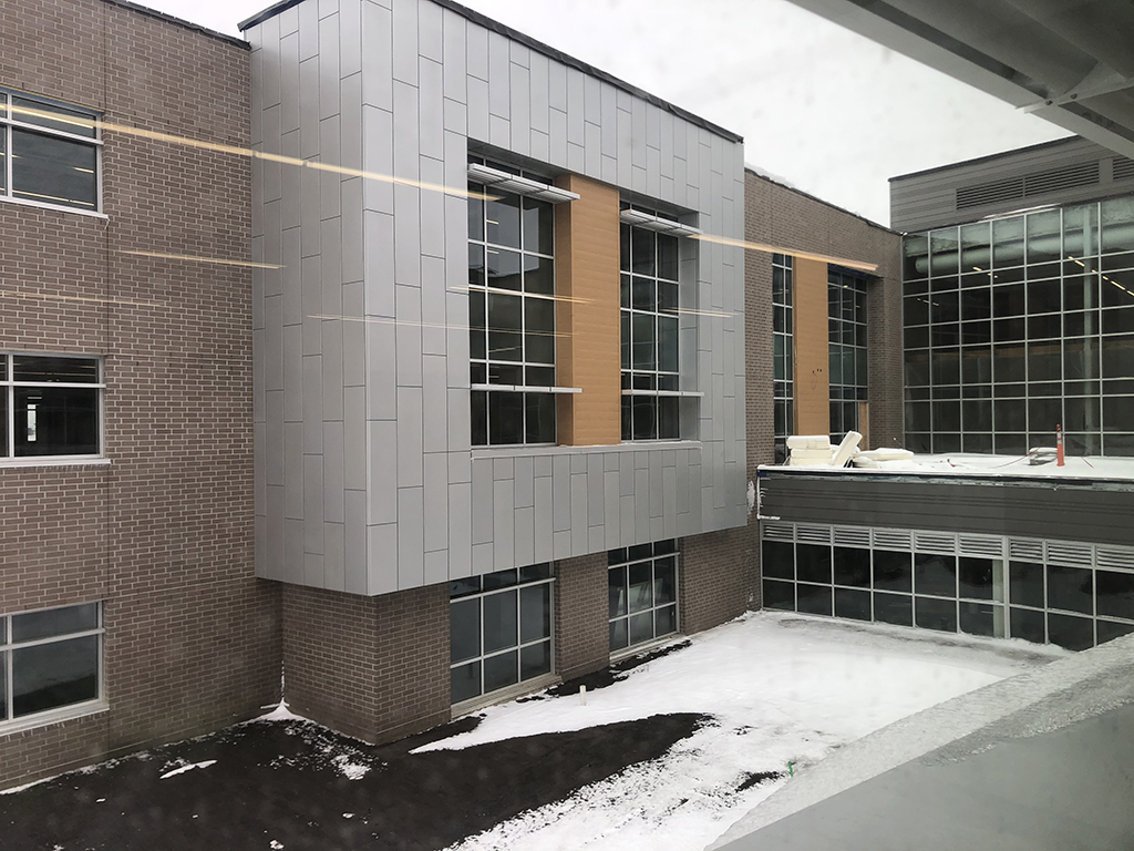 - 3-story academic wings that flank the media center and extend to the commons area.